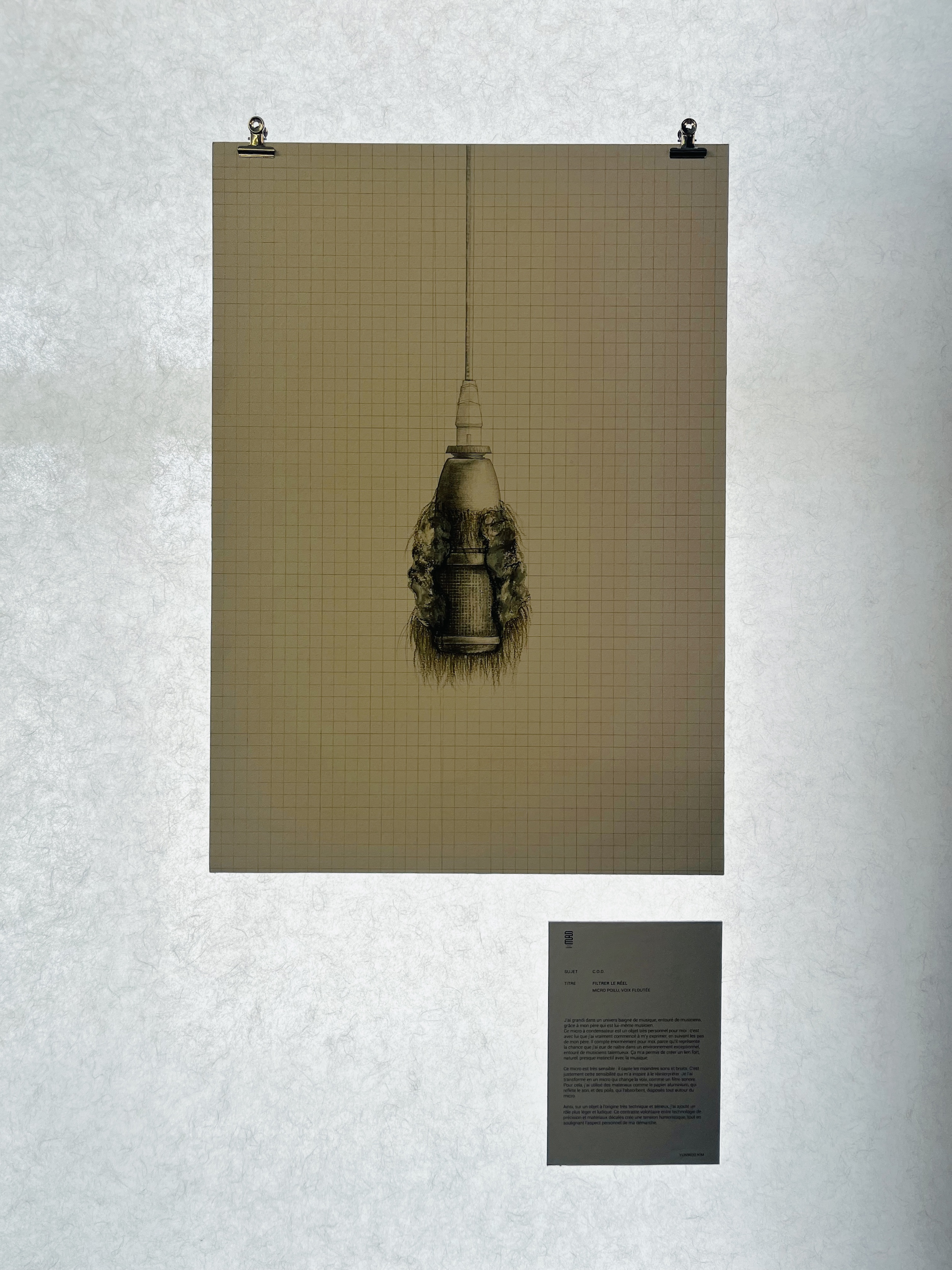 This microphone is extremely sensitive: it picks up the slightest sounds and noises. It is precisely this sensitivity that inspired me to reinterpret it. I transformed it into a microphone that alters the voice, like a sound filter. To achieve this, I used materials such as aluminum foil, which reflects sound, and hair, which absorbs it, arranged all around the microphone.