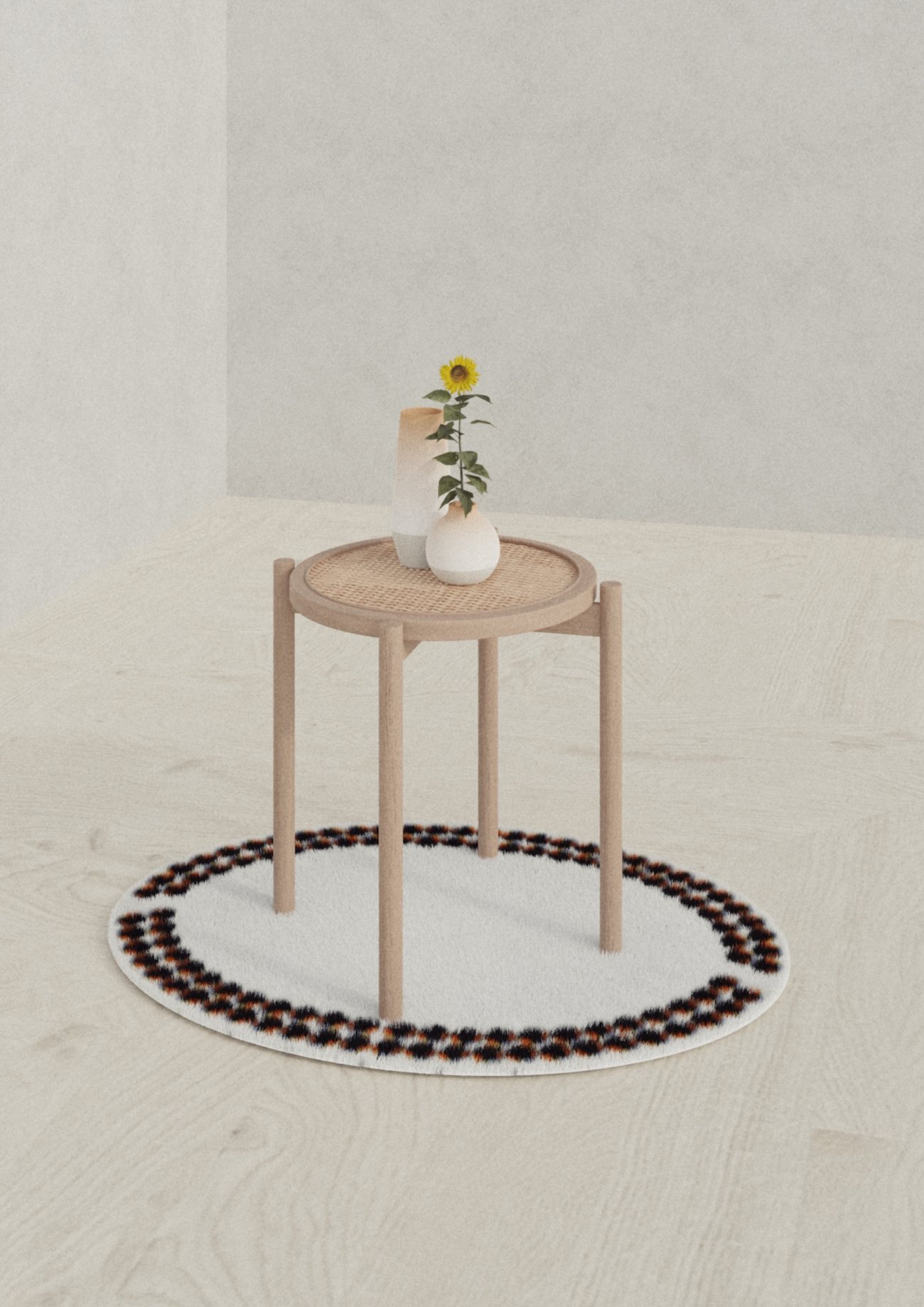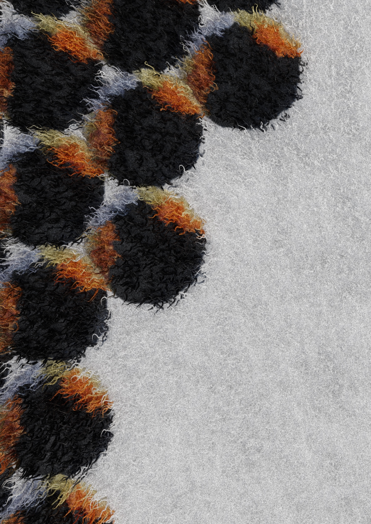Cozy Swarm draws its inspiration from animal sociability, particularly the ‘huddling’ behavior of penguins. Penguins cluster into a tight mass to protect themselves from freezing temperatures. Its dynamic movement, reminiscent of the fibers of the rug and the variation in the rug’s height, evokes the union of individuals forming a protective structure against the cold. Cozy Swarm provides a sense of warmth, softness, and protection, while capturing the spirit of solidarity in a cold environment.